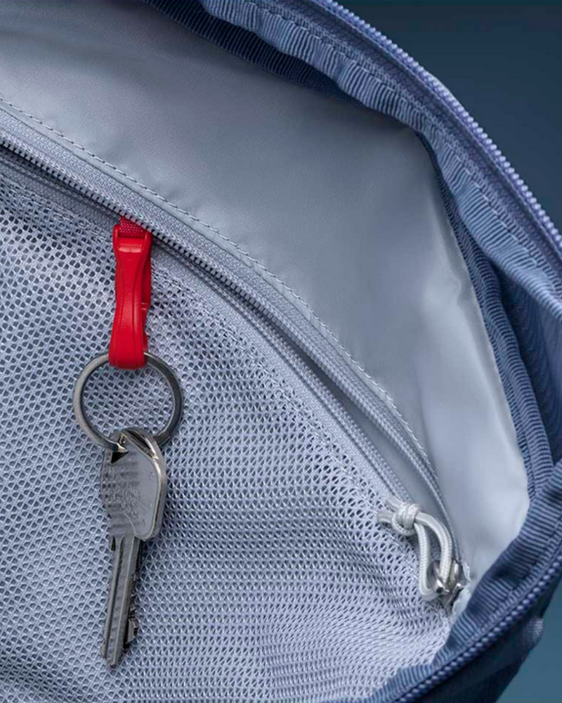 - Bočné elastické vrecká pre fľaše s vodou, zipové bedrové vrecká a vnútorná karabína na kľúče zlepšujú organizáciu výbavy.
