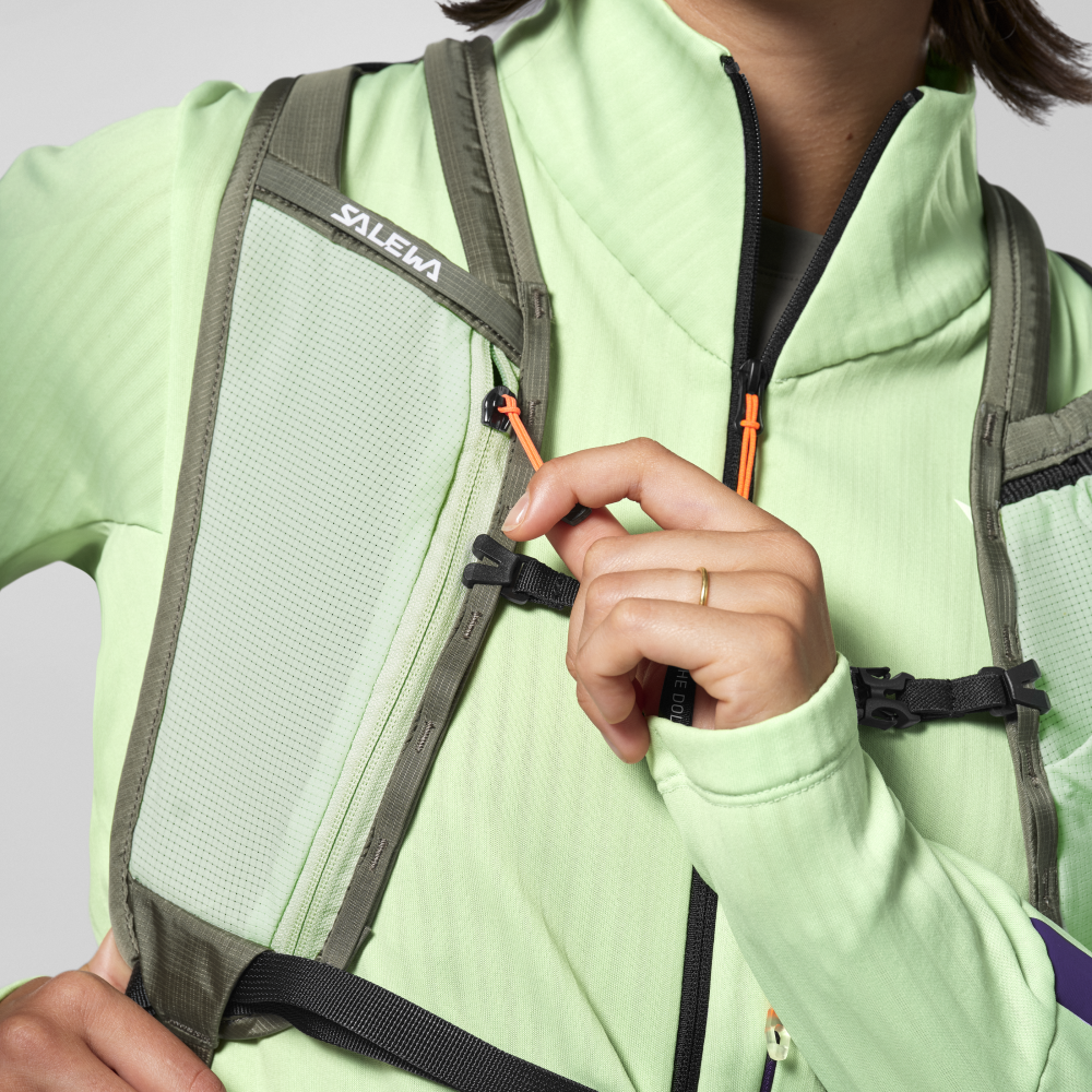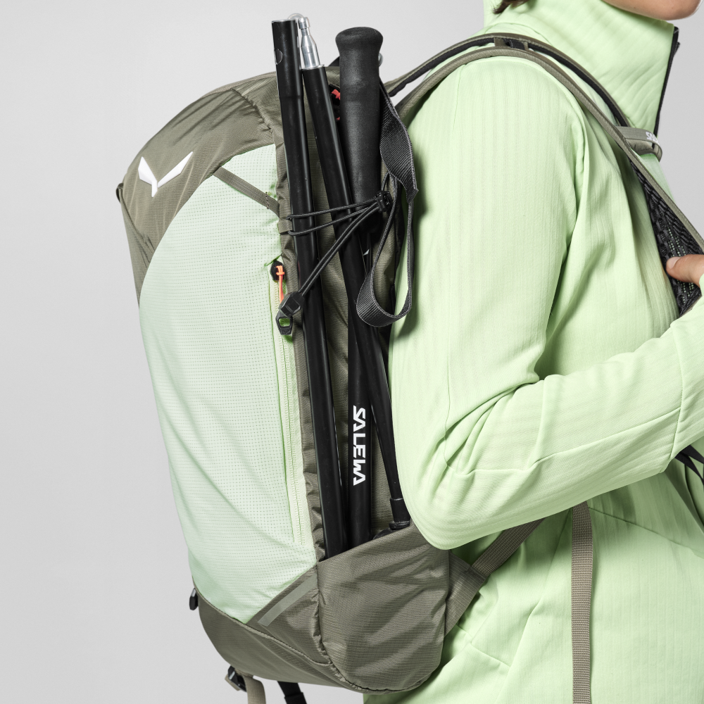 Ľahký a univerzálny batoh Salewa Pedroc Active 12L faded green na rýchlu turistiku vyrobený z recyklovaného ripstopového nylonu.