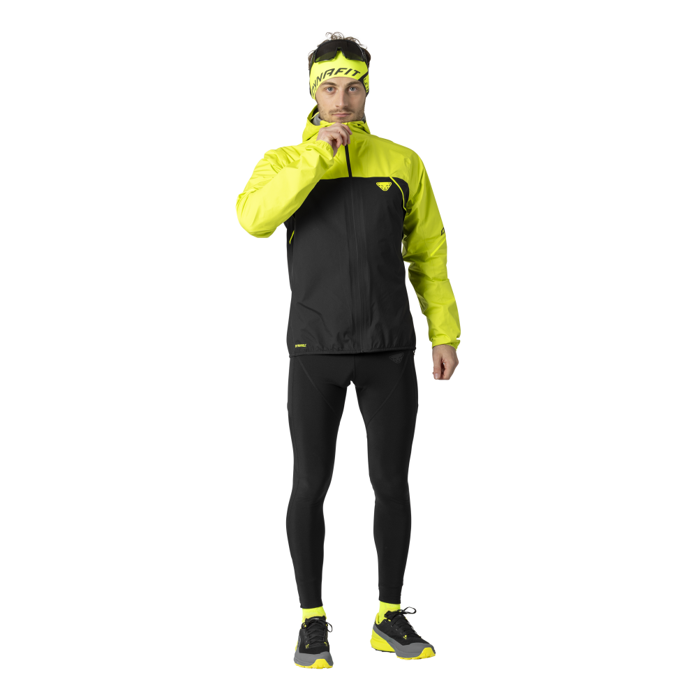 Ľahká, vodeodolná a priedušná bunda Dynafit Alpine 3L Jacket na trailový beh s inovatívnym systémom„ZipOver“.