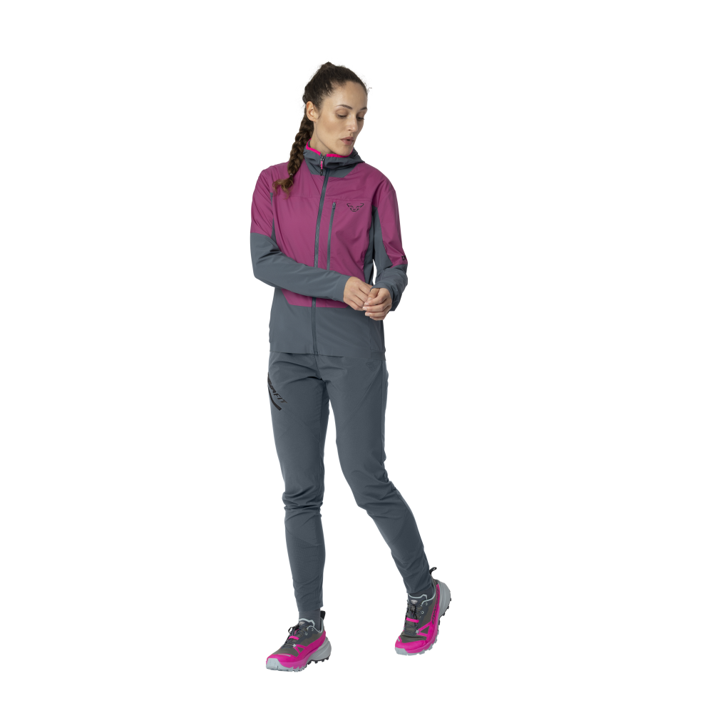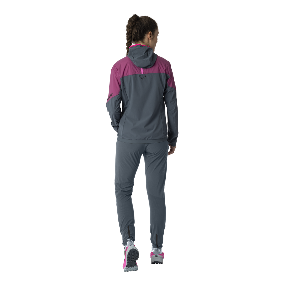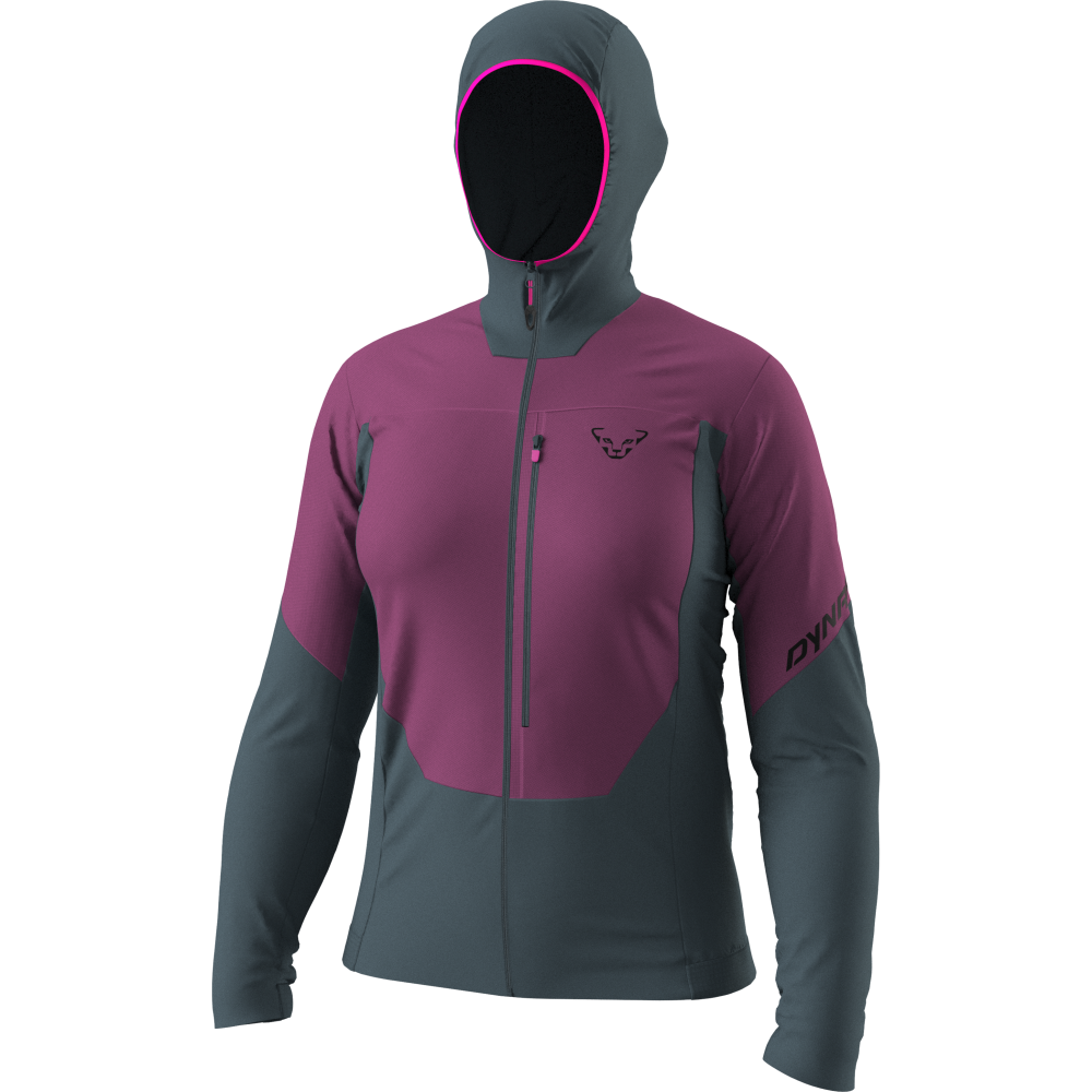 Ľahká hybridná izolačná bunda Dynafit Traverse INS Hooded W magenta s priedušnou podšívkou Octa® na prednej strane.