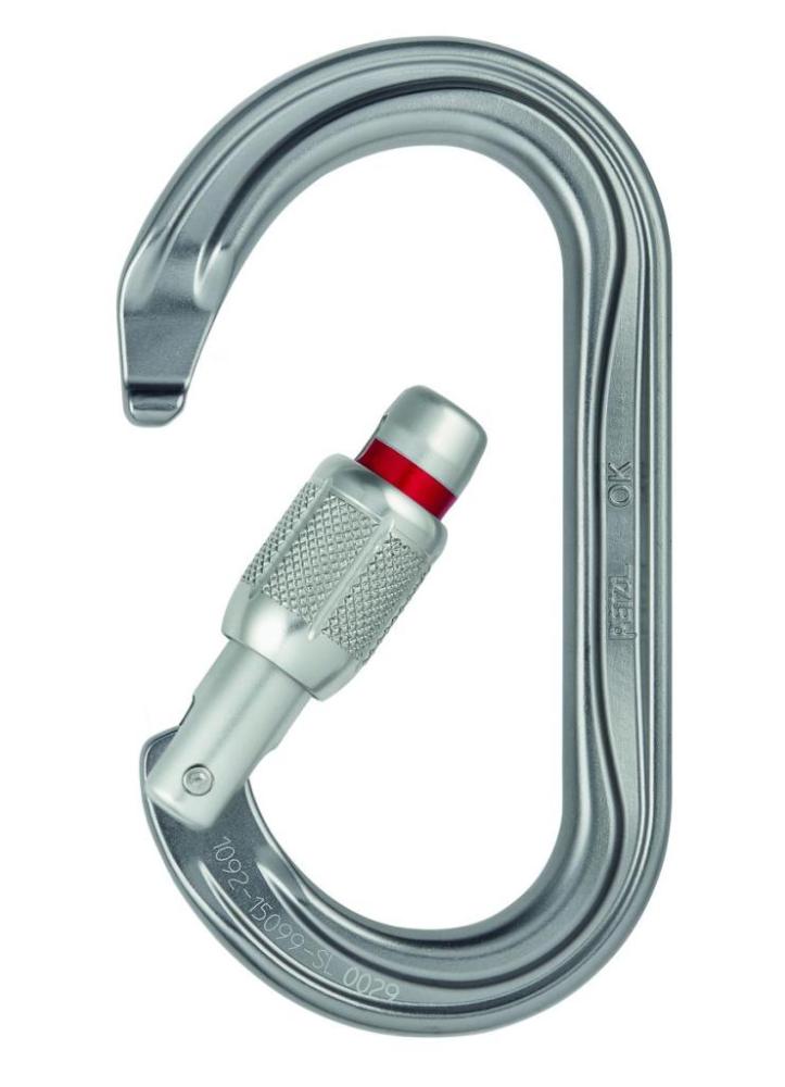 Oválna karabína Petzl OK Screw Lock s poistkou zámku.