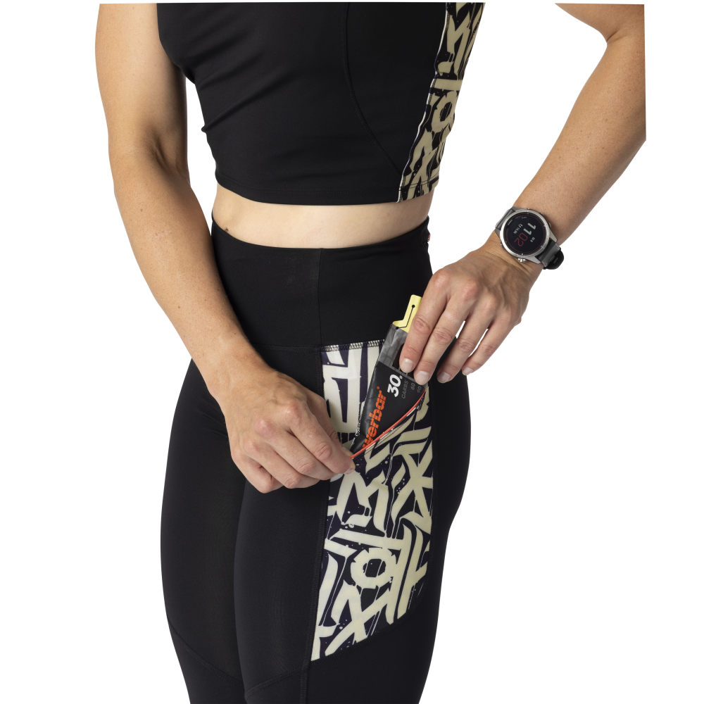 Trail 7/8 Tights, verné heslu „Vreciek nikdy nie je dosť“, disponujú rôznymi praktickými vreckami na uloženie smartfónu, kľúčov alebo jedla.