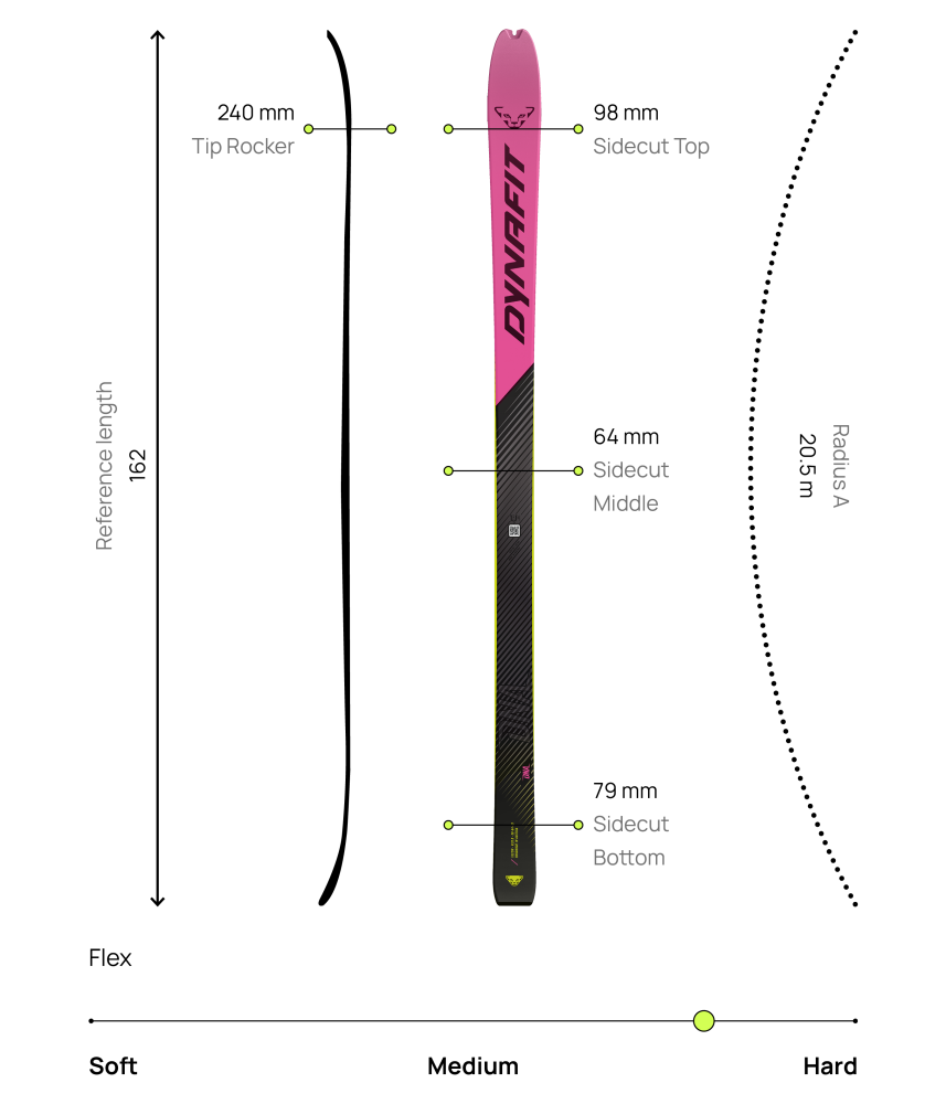 Ultraľahké unisexové skialpinistické lyže DYNAFIT DNA majú pôsobivú odolnosť na preteky, ako aj energeticky úsporné stúpania a rýchle zjazdy.
