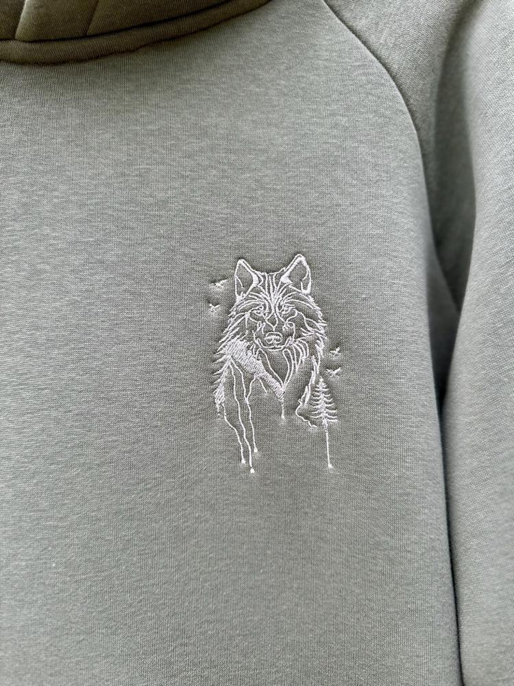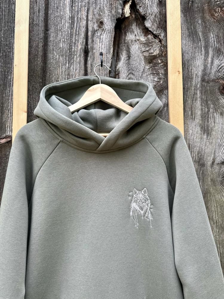 Unisex mikina Nanuk, klasickej dĺžky s výšivkou vlka.