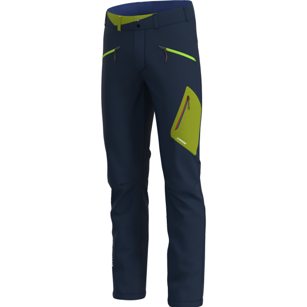 Pánske nohavice PANT RESOLUTION MAN sú vyrobené z odolného a pružného softshellového materiálu Endurance, ktorého fleecová podšívka spoľahlivo zahreje a odvedie pot, zatiaľ čo vonkajšia strana spoľahlivo ochráni pred vetrom a oderom. Povrch je navyše ošetrený vodeodpudivou úpravou DWR. Regular strih vyhovie rôznym postavám, pohodlný pás s rozopínaním na zips a cvoky je opatrený aj pútkami na opasok. Nohavice majú dva bočné vrecká a jedno steheným vreckom so zipsami. Nohavice je možné rozopnúť pomocou zipsu a prispôsobiť obvod rôznym typom obuvi – od turistických až po niektoré typy skialpinistických topánok. Decentný dizajn je zdobený výraznými farbami zipsov a materiálu stehenného vrecka. Tieto univerzálne zateplené nohavice sa hodia na širokú škálu zimných aktivít v horách.