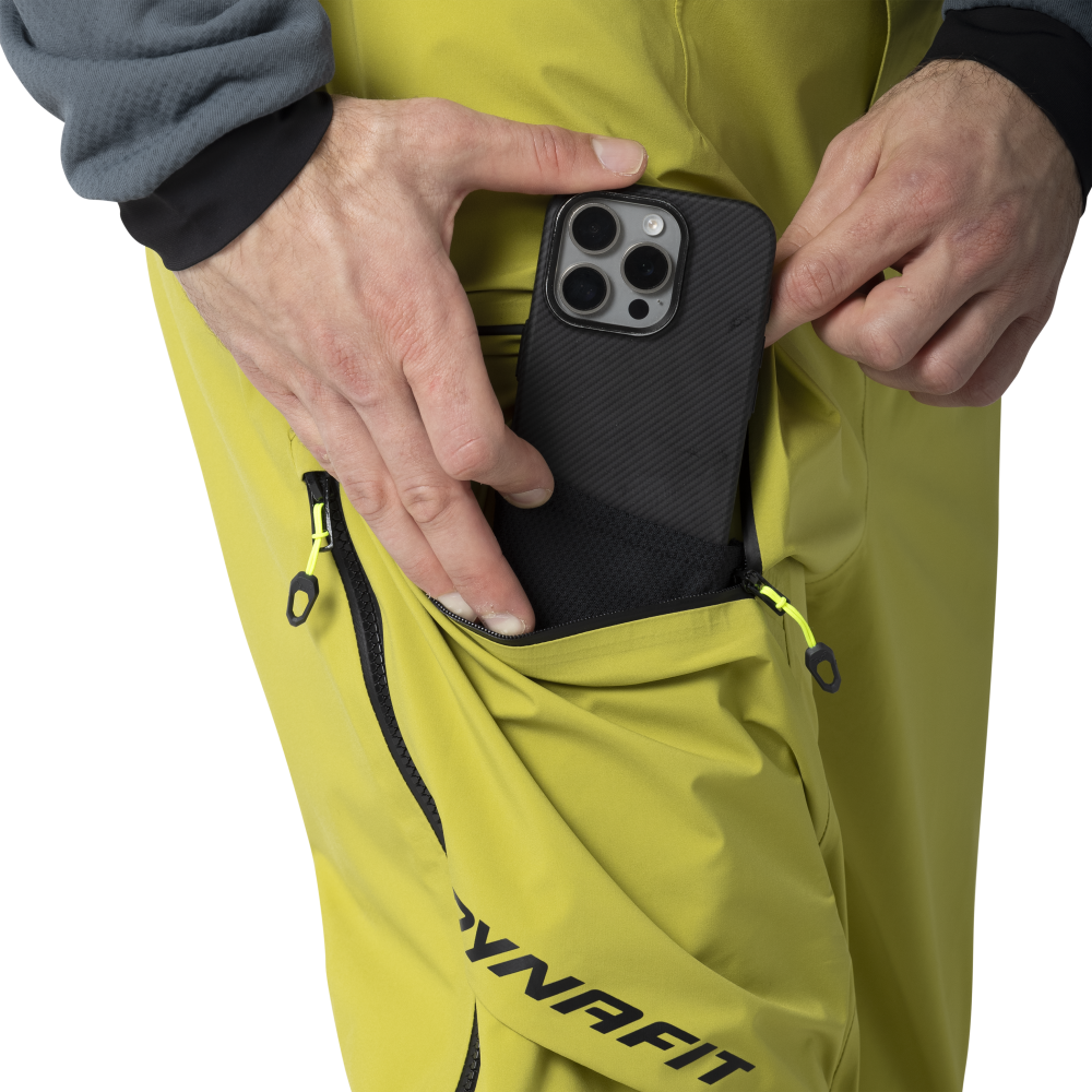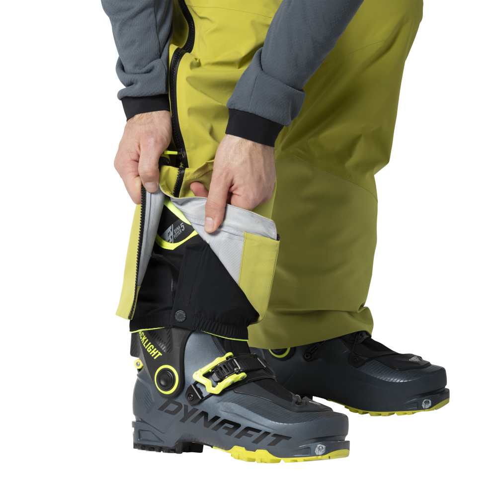 Trojvrstvový materiál Dynashell bez obsahu PFAS s vodným stĺpcom 20 000 mm vám ponúka spoľahlivú ochranu pred vetrom a počasím aj v tých najnepriaznivejších podmienkach. Zároveň je veľmi priedušný, takže sa počas náročných výstupov neprehrejete. Bočný zips zaisťuje vetranie, návlek zabraňuje vnikaniu snehu a ochrana okrajov poskytuje ochranu pri používaní mačiek. Pás je nastaviteľný pre optimálne prispôsobenie.