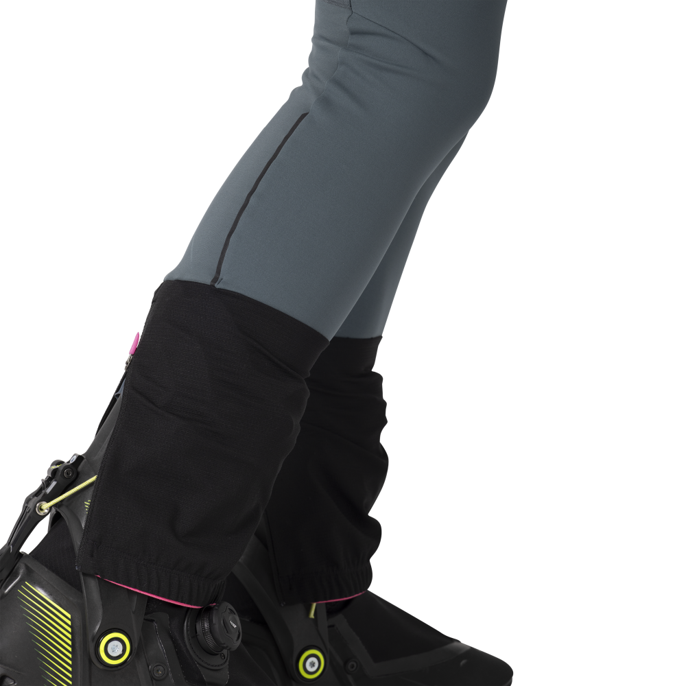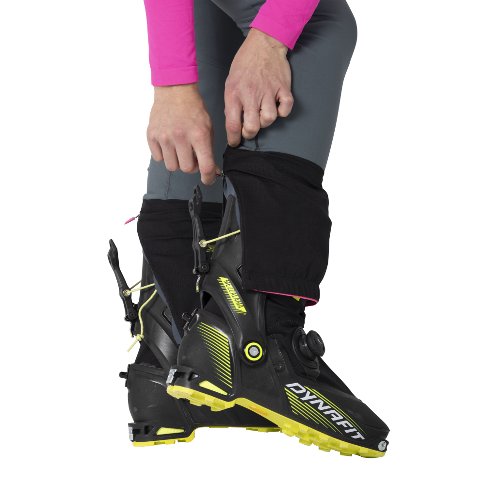 Elastický, nastaviteľný pás zaisťuje pohodlné a bezpečné nosenie. Roztiahnuteľné lemy perfektne sedia na skialpinistické topánky.