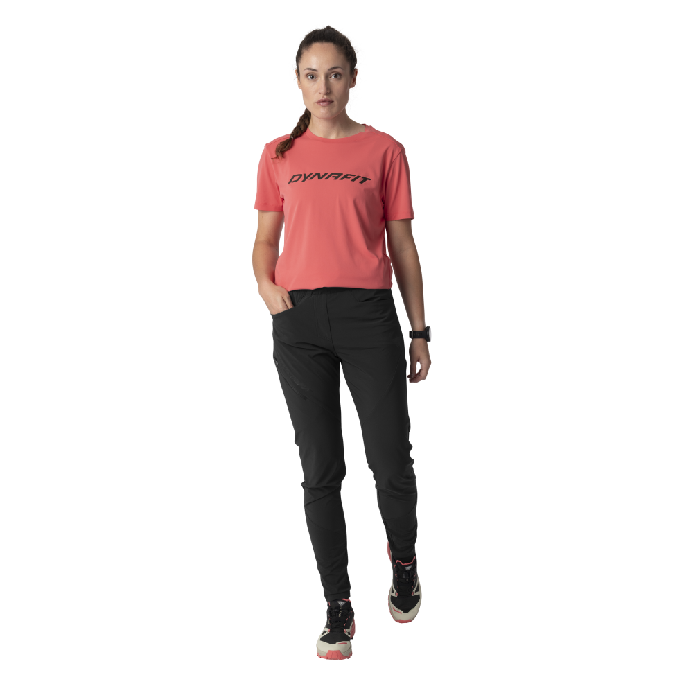 Ľahké, všestranné nohavice Dynafit Traverse Hybrid DST W black out zo zmesi materiálov a úzkeho strihu pre športovcov.