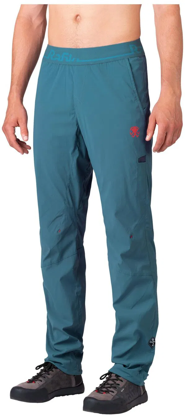 Ultraľahké, vzdušné a pohodlné lezecké nohavice Rafiki Drive, ktoré v páse skvele držia vďaka stiahnutiu do gumy. Vďaka ľahkému materiálu a vzdušnosti sú perfektnou voľbou pre horúce letné dni alebo lezenie vo vnútri, keď z akéhokoľvek dôvodu nechcete siahať po kraťasoch. Môžete si ich nasadiť, keď mierime na skaly, pretože sú pohodlné a môžete sa spoľahnúť, že vás podržia aj pri ťažkých bouldrových pohyboch. Samozrejmosťou je vrecko na kefku, pútko na vrecko s kriedou, ale poteší aj funkčné sťahovanie nohavíc, vďaka ktorému Vám nohavice nebudú plandieť cez lezečky, keď budete práve šliapať vo Vašom najnovšom projekte.