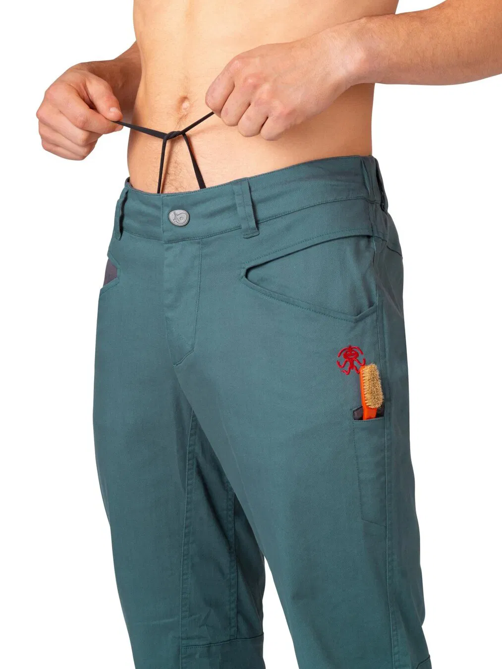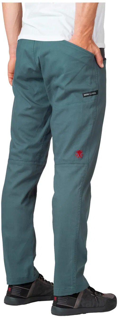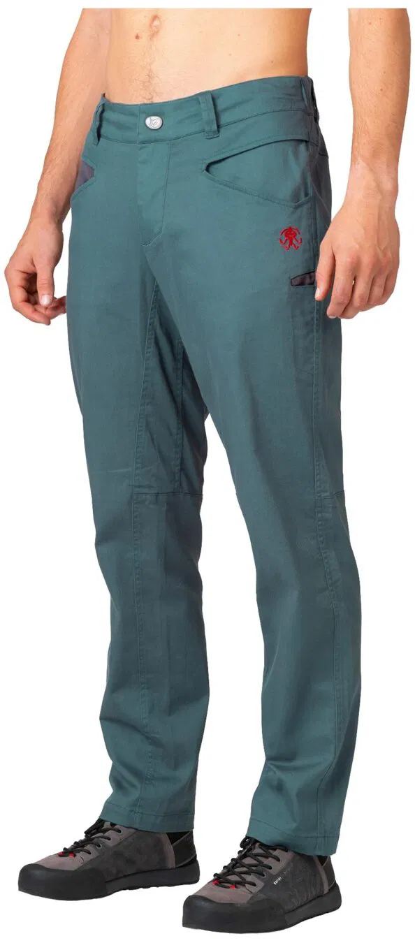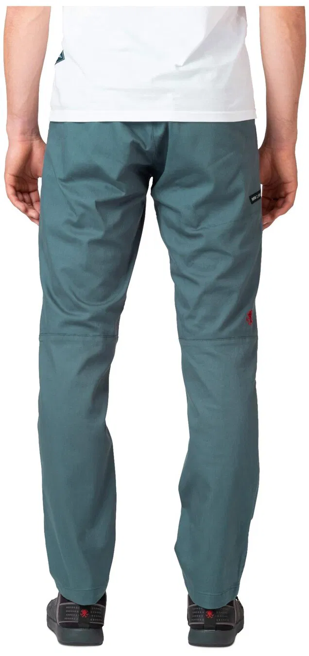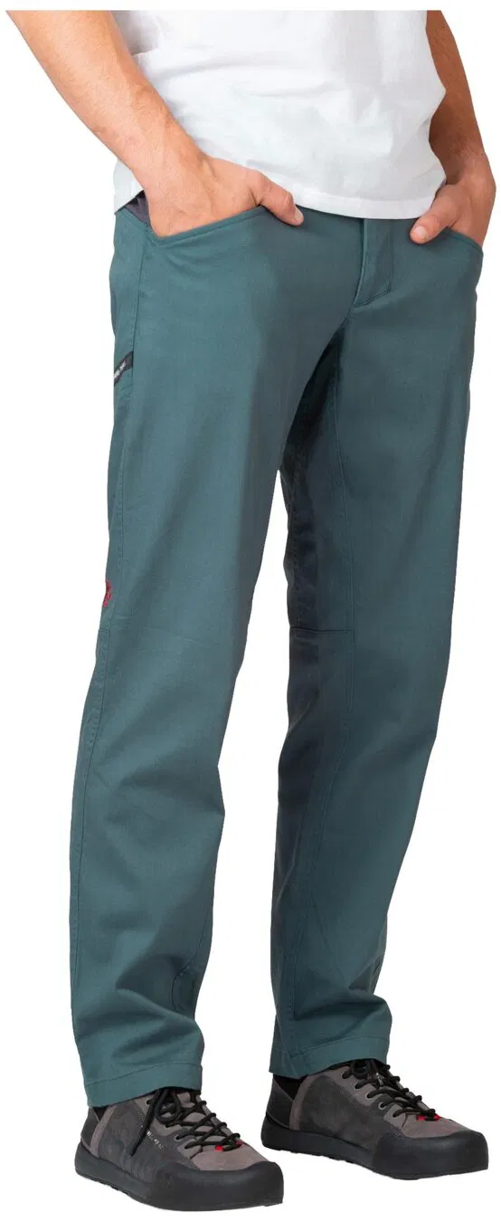 Bavlnený materiál s twillovou väzbou a elastanom zaručuje, že nohavice skvele obstoja v každej lezeckej výzve. Nohavice sú vyúženejšie a skvele vybavené, samozrejmosťou je lezecký klin v kroku, pás čiastočne do gumy, tvarované kolená, puzdro na kefku, pútka na opasok aj vnútorné šnúrky na stiahnutie. Rocklandy boli poriadne otestované pri lezení.