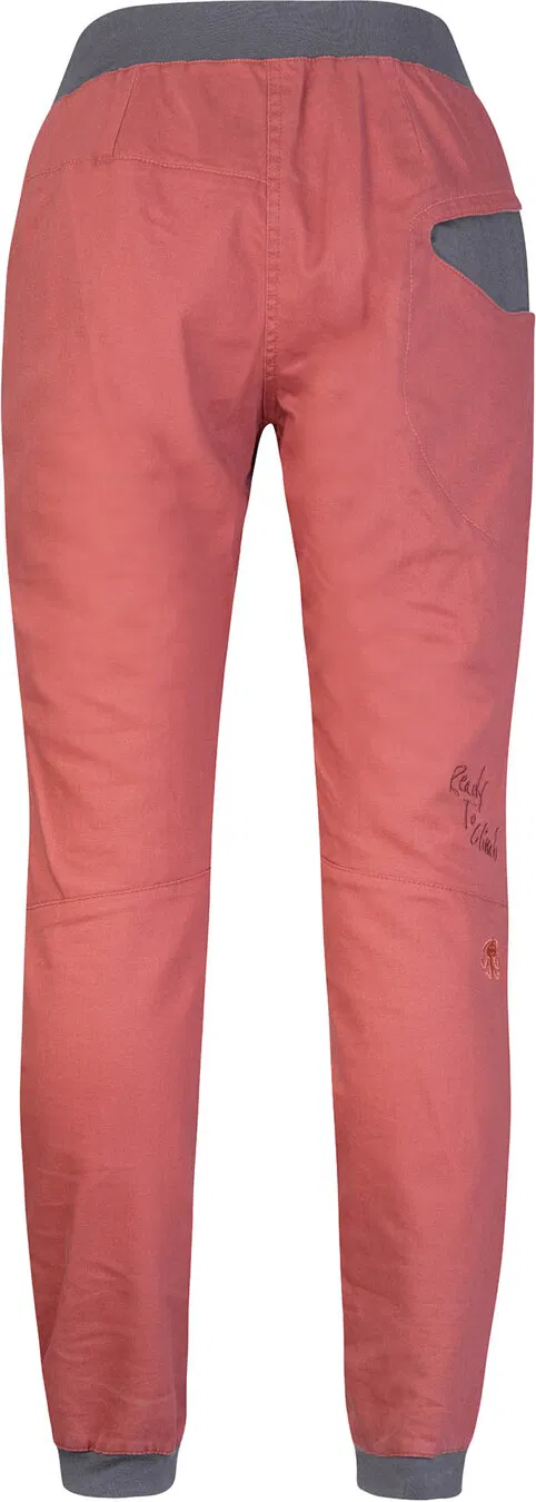 Dámske horolezecké nohavice Rafiki Sierra, civilnejšieho vzhľadu z pevnej bavlnenej tkaniny, ktorá vydrží aj hrubšie zaobchádzanie.