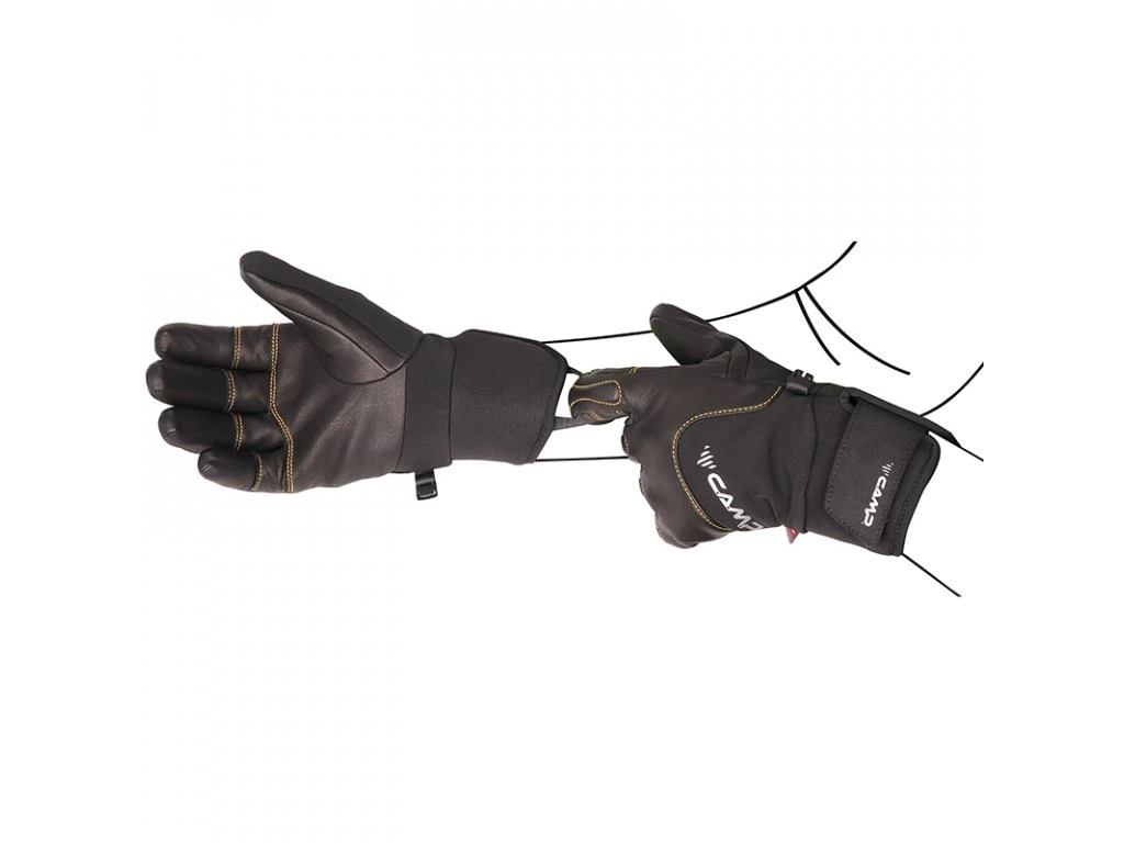 Geko Guide sú stredne teplé zimné technické rukavice s prvotriednou kozou kožou, navrhnuté na lezenie v ľade a mixoch. Vysoko odolná kvalitná kozia koža spevňuje a zároveň chráni celú dlaň aj chrbát ruky. Prsty s konštrukciou „Dart finger“ zaisťujú vysokú úroveň zručnosti, komfortu a precíznej citlivosti pri úchope, aká sa od tohto typu rukavíc očakáva. Tepelný komfort rukavíc udržuje hlavná izolácia Primaloft® Gold 100 g/m2, ďalej izolácia dlane Primaloft® Gold Eco Grip Control 60 g/m2 a v neposledné rade aj priedušná vode odolná membrána DRYZONE®. Táto robustnejšia, odolnejšia verzia klasických alpinistických rukavíc Geko bola vyvinutá na žiadosť svetovo uznávaných horolezcov, s ktorými spoločnosť CAMP dlhodobo spolupracuje.