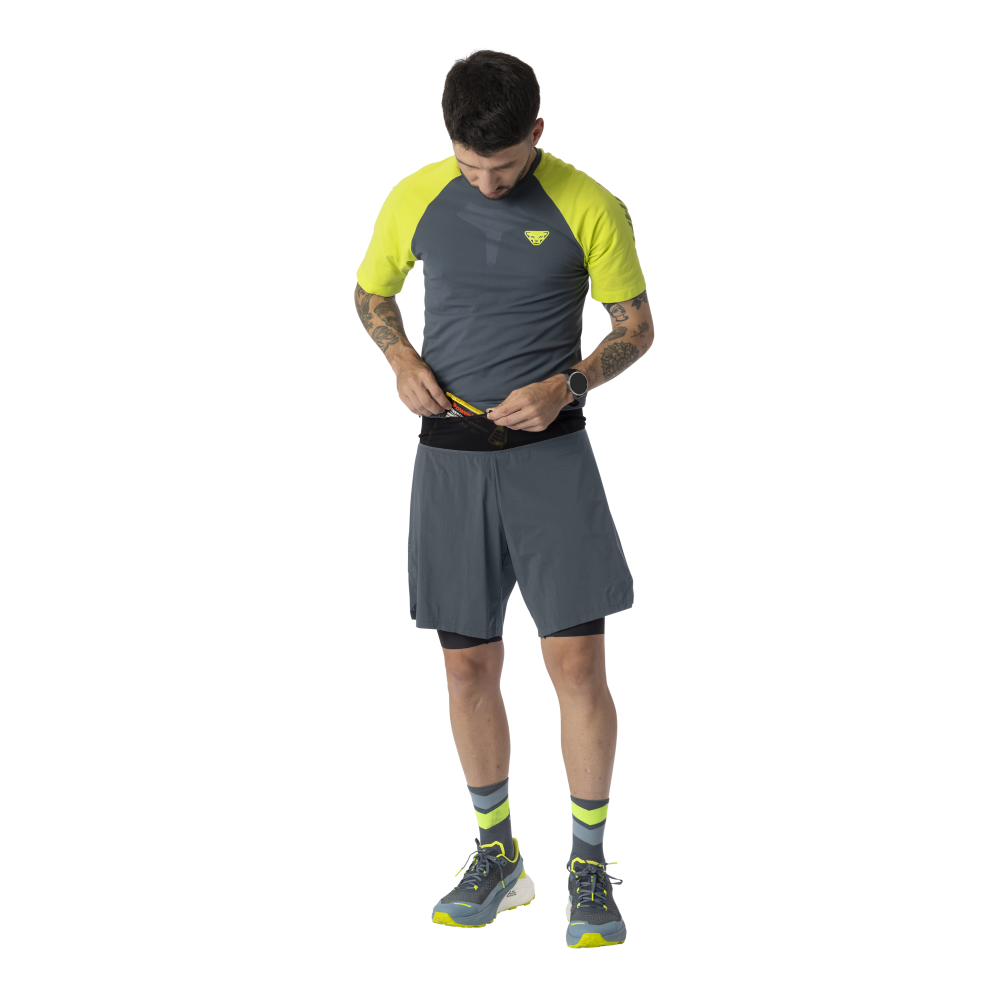 Bežecké šortky na ultramaraton s množstvom vreciek a integrovanými krátkymi vložkami – pre ideálne nosenie v náročných situáciách.
