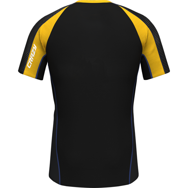 Zadná strana a boky sú vyrobené z vysoko priedušnej sieťoviny PERFORMESH, ktorá navyše veľmi rýchlo schne a udržujem vás tak v suchu a pohodlí. Oblasť ramien z tkaniny COOLWAVE vyniká, okrem už spomínaných vlastností, vo svojej pružnosti, čo poskytuje absolútnu voľnosť pohybu. Horná strana ramien je opatrená technológiou REFLEXTIVE PRINT, teda reflexnou potlačou, ktorá zaisťuje viditeľnosť, ale tiež podstatne zvyšuje odolnosť pri nosení bežeckej vesty či menšieho až stredne veľkého batohu. Dolný lem je laserovo zakončený, tým je zamedzené štiepeniu a zvyšuje celkový komfort. Nemôže chýbať originálny dizajn CRAZY v podobe kvalitnej celoplošnej potlače.