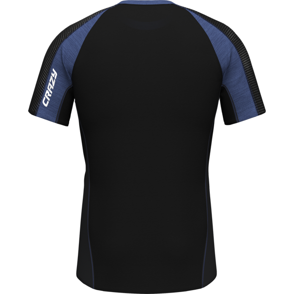 Zadná strana a boky sú vyrobené z vysoko priedušnej sieťoviny PERFORMESH, ktorá navyše veľmi rýchlo schne a udržujem vás tak v suchu a pohodlí. Oblasť ramien z tkaniny COOLWAVE vyniká, okrem už spomínaných vlastností, vo svojej pružnosti, čo poskytuje absolútnu voľnosť pohybu. Horná strana ramien je opatrená technológiou REFLEXTIVE PRINT, teda reflexnou potlačou, ktorá zaisťuje viditeľnosť, ale tiež podstatne zvyšuje odolnosť pri nosení bežeckej vesty či menšieho až stredne veľkého batohu. Dolný lem je laserovo zakončený, tým je zamedzené štiepeniu a zvyšuje celkový komfort. Nemôže chýbať originálny dizajn CRAZY v podobe kvalitnej celoplošnej potlače.